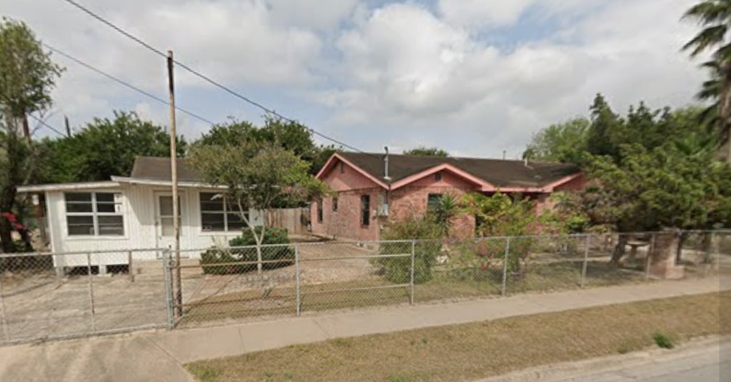 His home is the red brick, his bakery the white house in Brownsville TX.