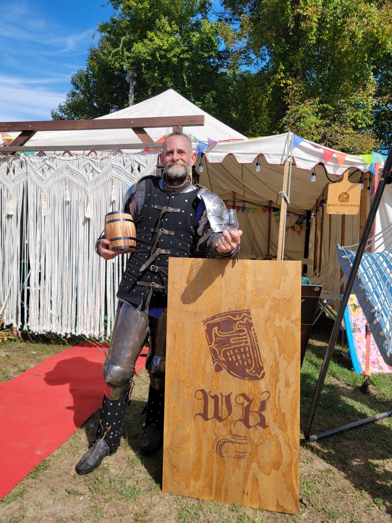 I saw the vision, and because of him, I’ll never forget the comments I received for having them at my booth. The good neat set up, tavern-esk immersion. From a water dispenser holder, to my host’s main table to set up the drinks. During our other special events, it became the round table everyone shared good times with friends and other rennies.