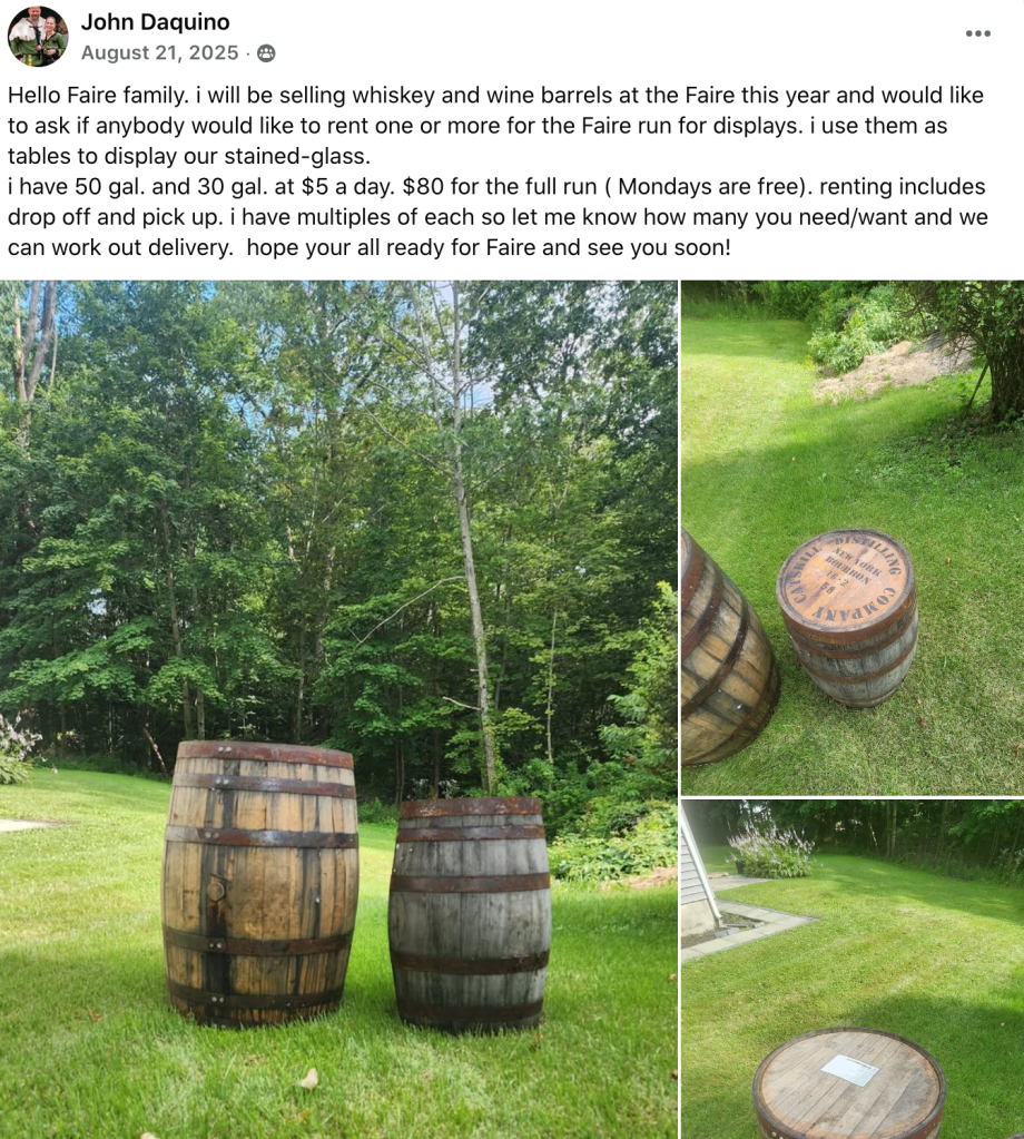 This for me was big, I added something not in the original design. I went from one to 7 barrels. Most of which were from a Jim Bean distillery. My vendor friend John, here’s his wife’s business page. He had posted this offer on our merchants community page.
